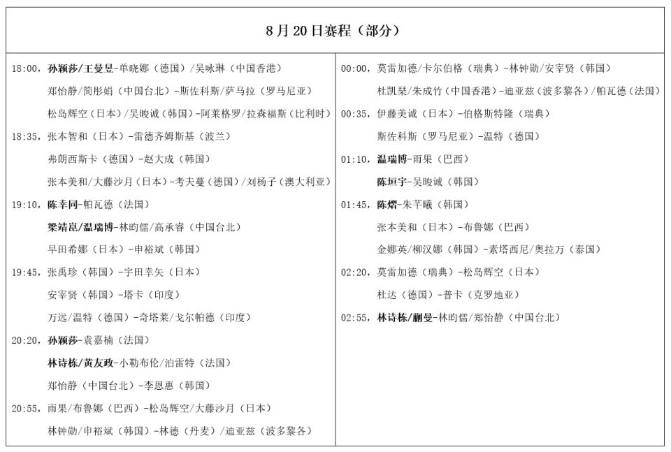 瑞典大满贯:8月20日赛程公布!国乒小将迎战雨果,孙颖莎等人再登场